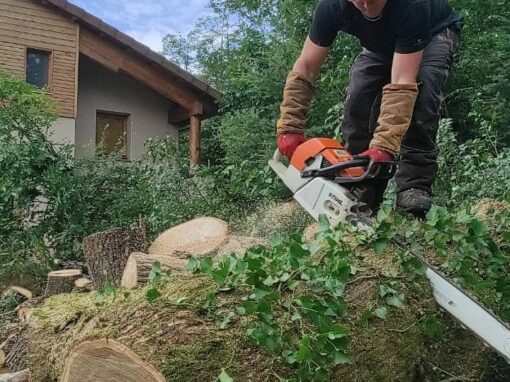 Lorsque l’arbre devient dangereux, malade ou inadapté à son environnement, nous procédons à un abattage contrôlé et sécurisé, adapté aux contraintes du terrain.